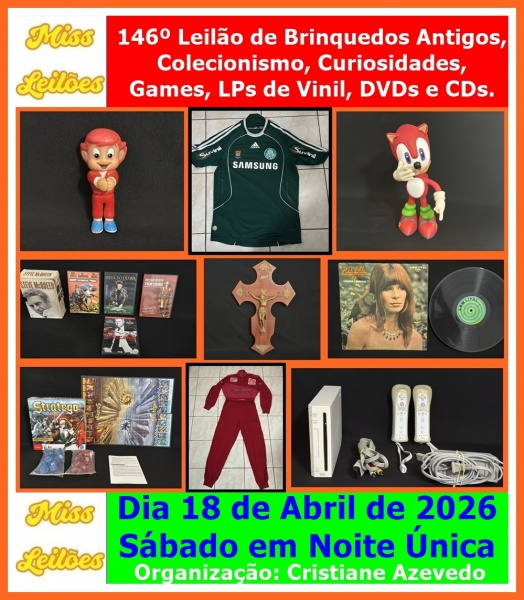 Leilão 61216 146º Leilão de Brinquedos Antigos, Colecionismo, Curiosidades, Games, LPs de Vinil, DVDs e CDs.