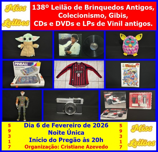 Leilão 59317 138º Leilão de Brinquedos Antigos, Colecionismo, Gibis, CDs, DVDs e LPs de Vinil antigos.