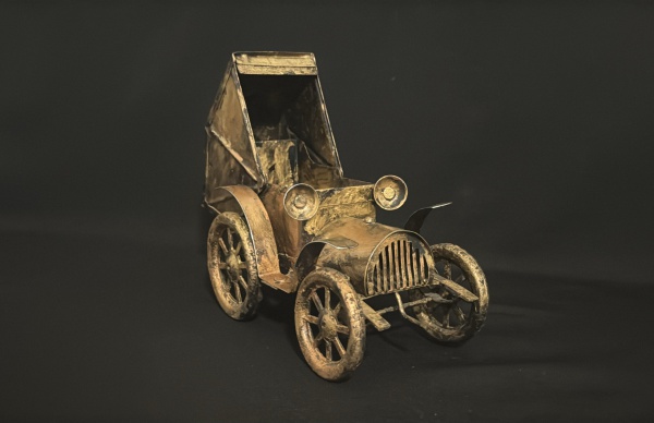 • CALHAMBEQUE ANTIGO EM METAL 20 CM CAPOTA MOVEL